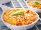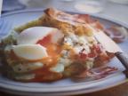 PURÉE AUX POIREAUX, oeufs mollets et lard croustillant